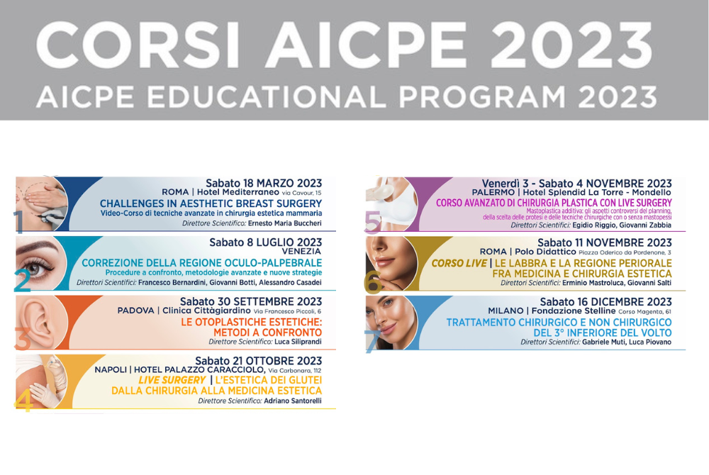 AICPE fornisce ai suoi Soci una formazione continua che rappresenta lo stato dell’Arte nella Chirurgia Plastica Estetica. L’aggiornamento scientifico si sviluppa attraverso i numerosi Corsi monotematici che AICPE svolge durante l’anno in varie città italiane.